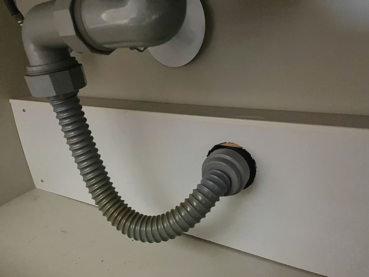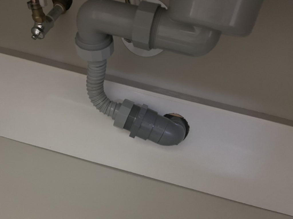 キッチンの排水管が固定されずに、ただ本管の排水口にさしているだけです。いつ水漏れしてもおかしくないのでネジ式に交換して下さい。
