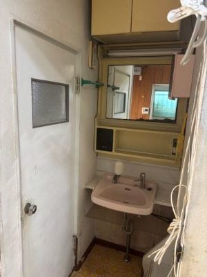 洗面台は狭いので既存の洗面ボールは残し、上部の鏡と棚を撤去し、鏡部分だけ新しく取り付けることにしました。