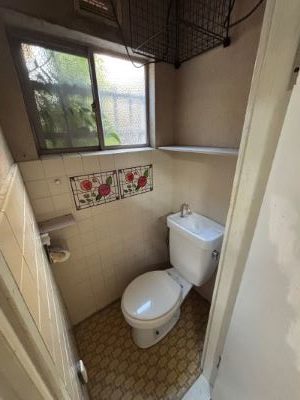 トイレは、そのまま使えそうだったので壁と天井は塗装し、床はクッションフロアを貼り換え便器本体は交換せず