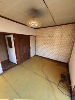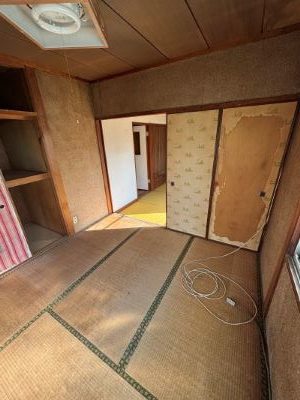 2階手前は、壁天井をクロスへ貼り換え床はじゅうたんからクッションフロアへ張り替えます。収納タンスは解体します。奥の和室は最初は畳の交換をして和室のままにしようと思ったのですが、1階も2階もクロスや床を張り替えるための下地のやり替えを全面的にするため、畳を変える費用と同じぐらいの金額で洋室に変更できるということで、和室から洋室へ変更することにしました。
