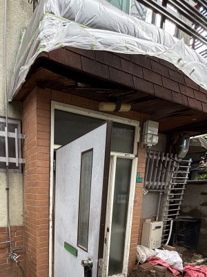 玄関扉は、2階ベランダからの水漏れで腐食で鉄板がはがれており、本当は玄関扉を新品へ交換したいのですが、サイズが既製品ではないため、特注でつくらないといけないそうで扉だけで10万では足りないとのことだったので、はがれた鉄板は貼り換え塗装することにしました。
